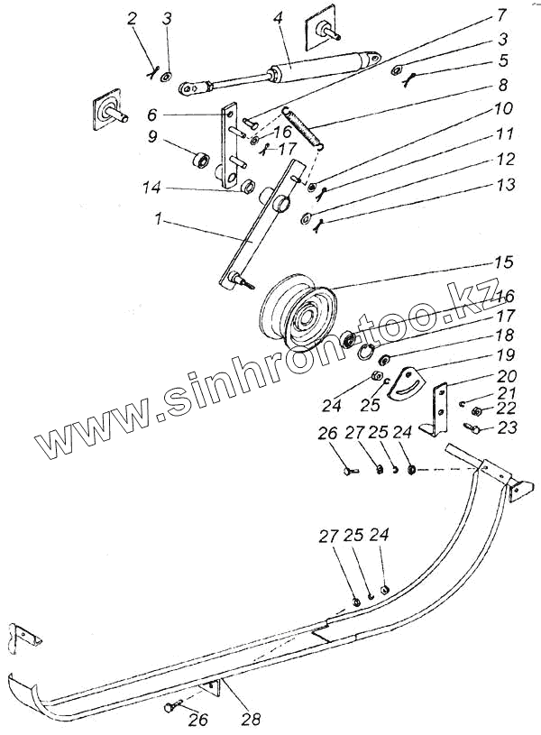 Каталог запасных частей к технике: КЗК Енисей 1200М. Механизм включения выгрузного шнека бункера (КДМ6-74А)