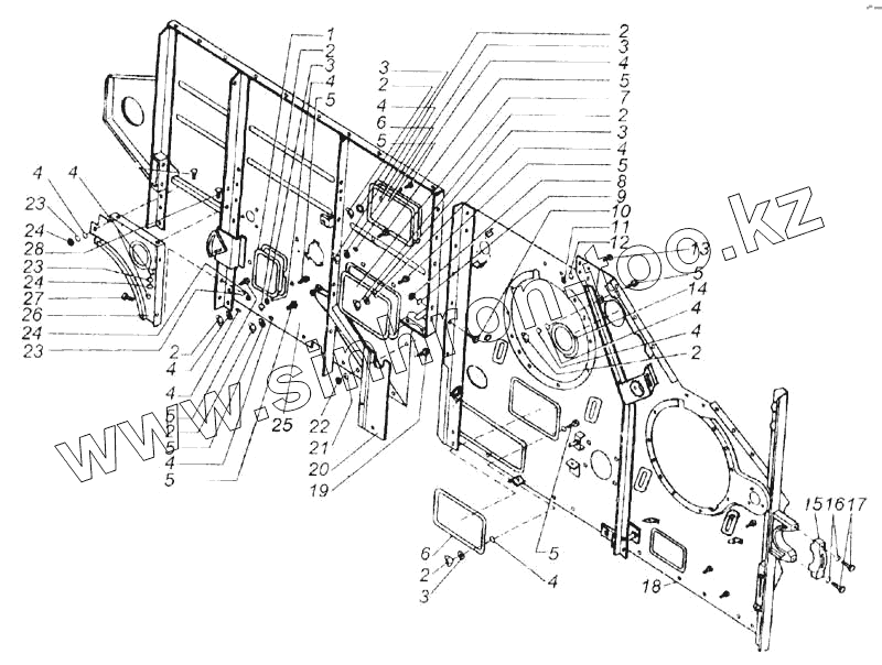 Каталог запасных частей к технике: КЗК Енисей 1200М. Панель правая с лючками