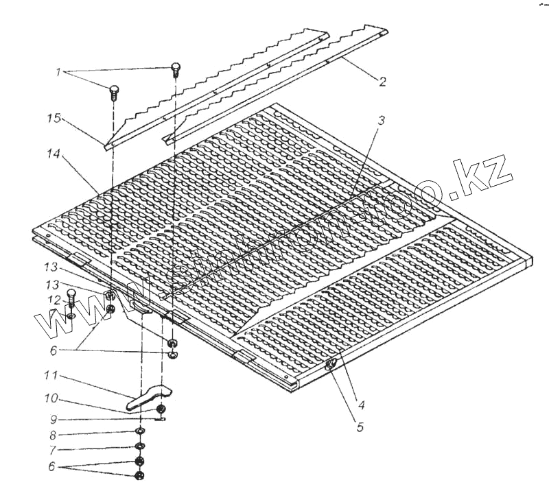 Каталог запасных частей к технике: КЗК Енисей 1200М. Решето очистки верхнее (КДМ2-12-3А)