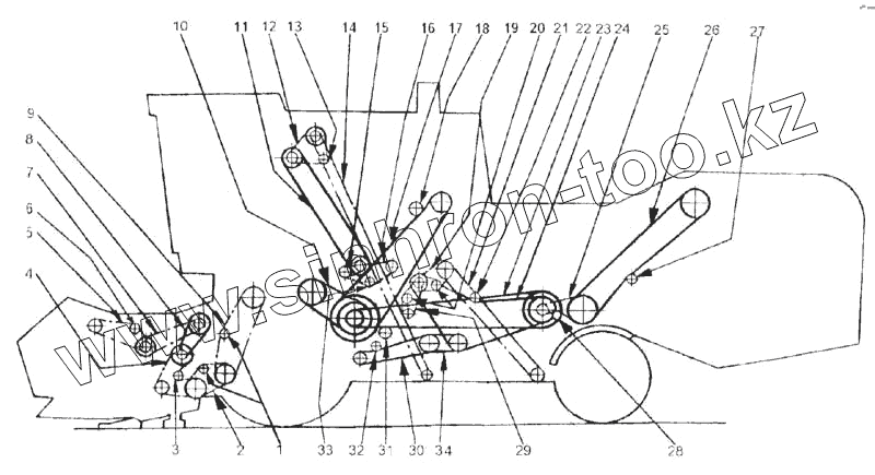 Каталог запасных частей к технике: КЗК Енисей 1200М. Схема передач левой стороны