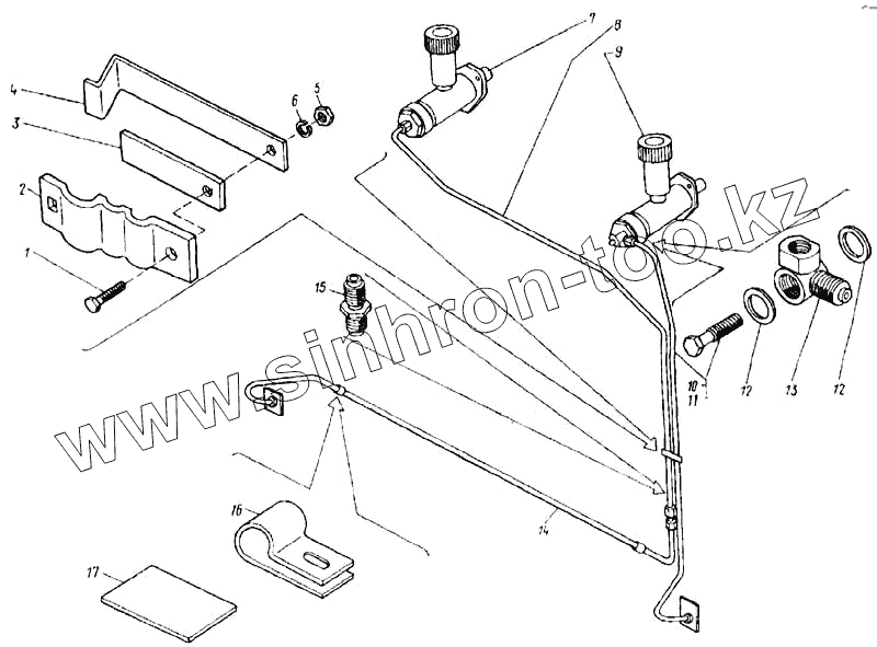 Каталог запасных частей к технике: КЗК Енисей 1200М. Трубопроводы гидравлических тормозов (ГСТ0-9А)