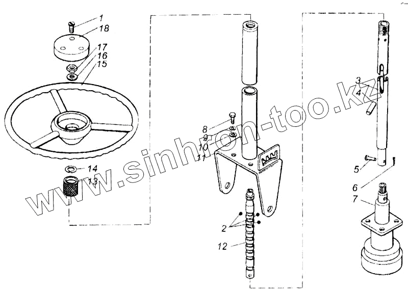 Каталог запасных частей к технике: КЗК Енисей 1200М. Управление рулевое (КДМ5-12Д)