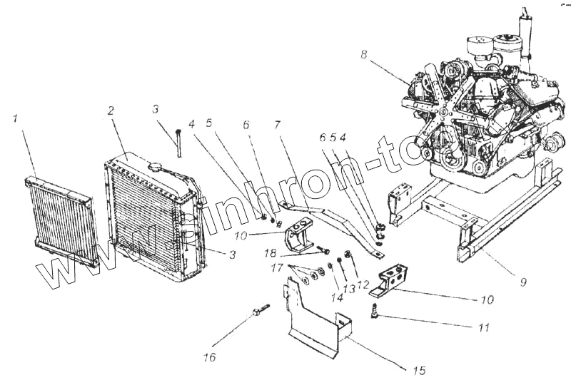 Каталог запасных частей к технике: КЗК Енисей 1200М. Установка моторная (236-3)