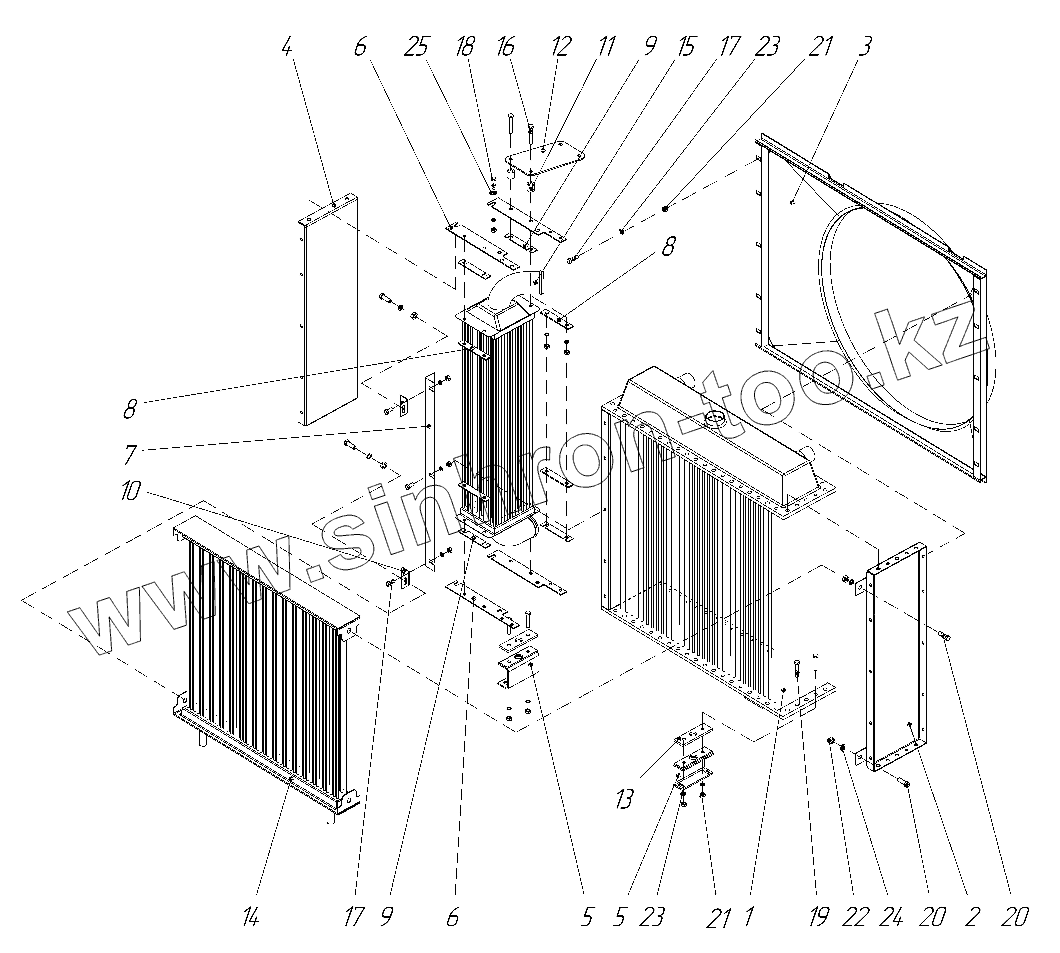 Каталог запасных частей к технике: КЗК Енисей КЗС-950. Блок радиаторов 442Н-4-77