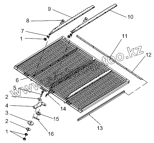 Каталог запасных частей к технике: КЗК Енисей КЗС-950. Решето очистки верхнее КДМ 2-12-3А