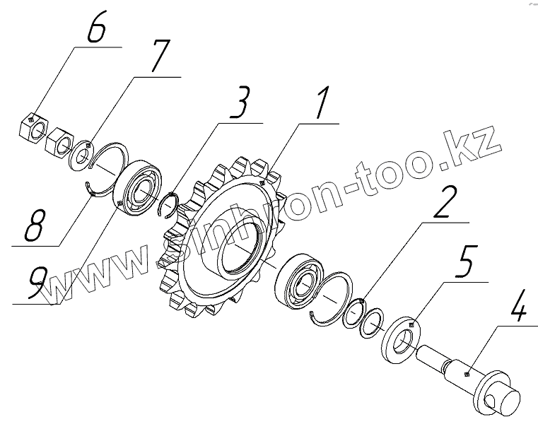 Каталог запасных частей к технике: КЗК Енисей КЗС-950. Звездочка натяжная ЖКН 5-6-7