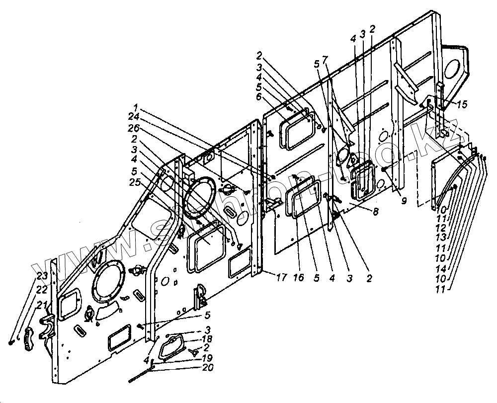 Каталог запасных частей к технике: КЗК Енисей КЗС-950. Панель левая с лючками