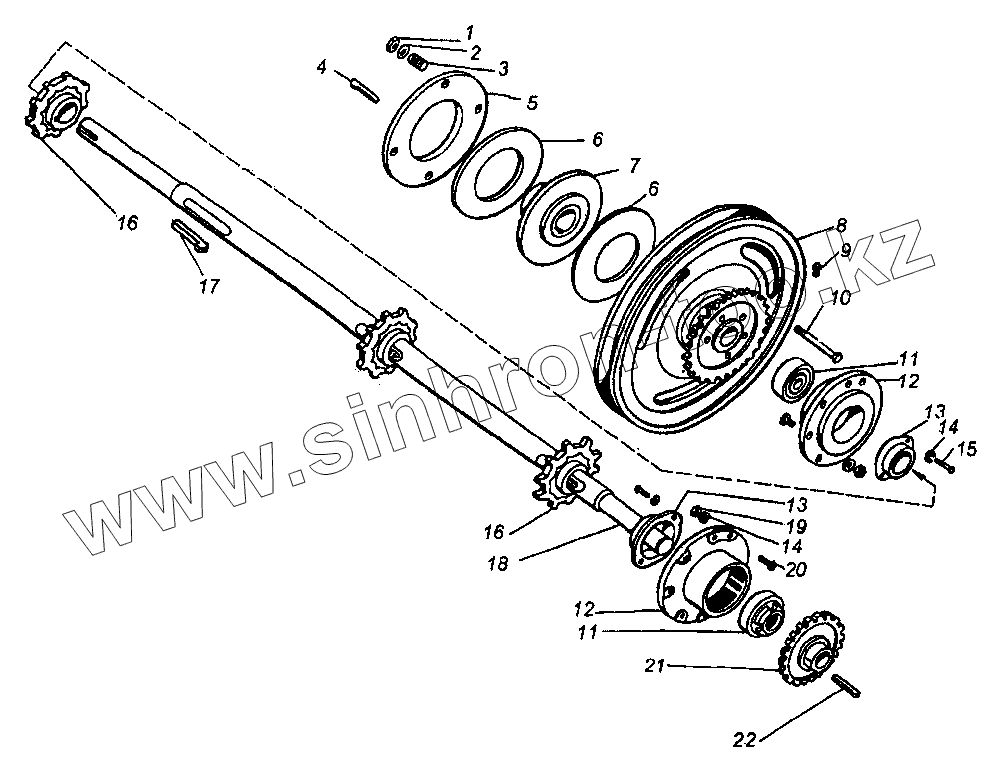 Каталог запасных частей к технике: КЗК Енисей КЗС-950. Вал верхней наклонной камеры Шкив наклонной камеры