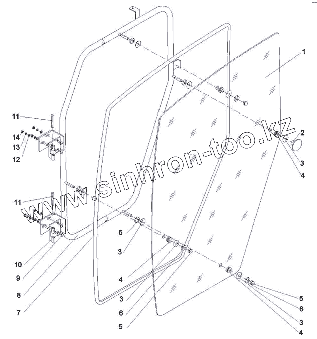 Каталог запасных частей к технике: КЗК Енисей КЗС-960 (2010). Дверь кабины левая