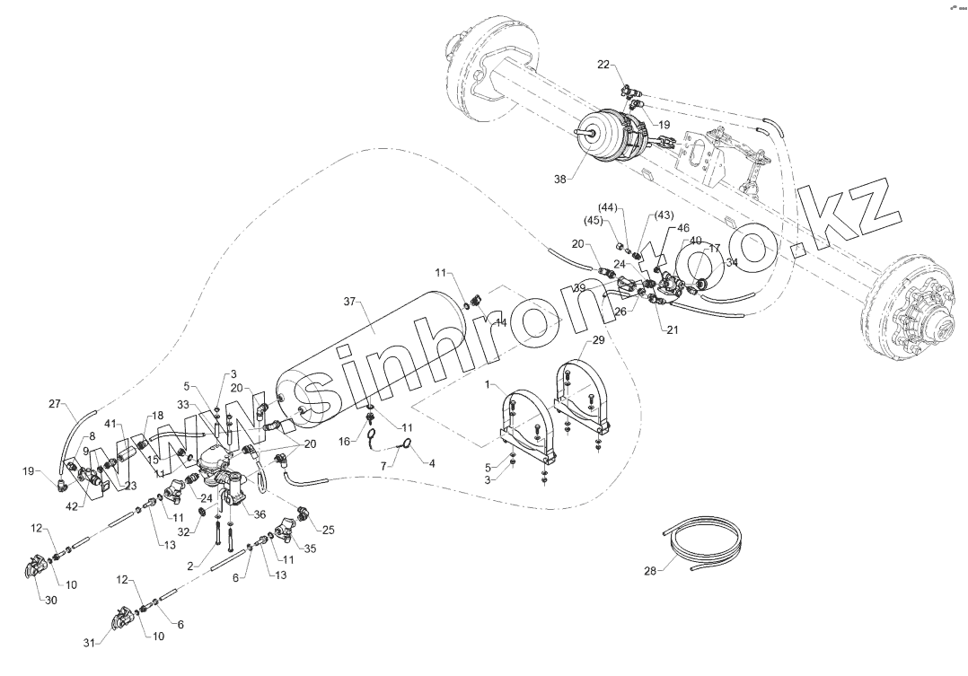 Каталог запасных частей к технике: Lemken Heliodor 9/700KA. 67710058 Compressed-air brake