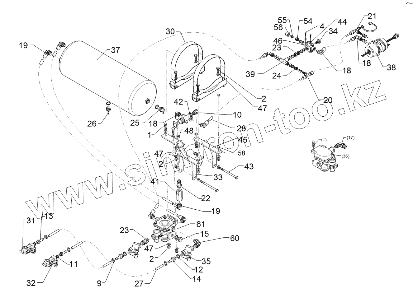 Каталог запасных частей к технике: Lemken Kristall 9/500KA. 67710010 Compressed-air brake