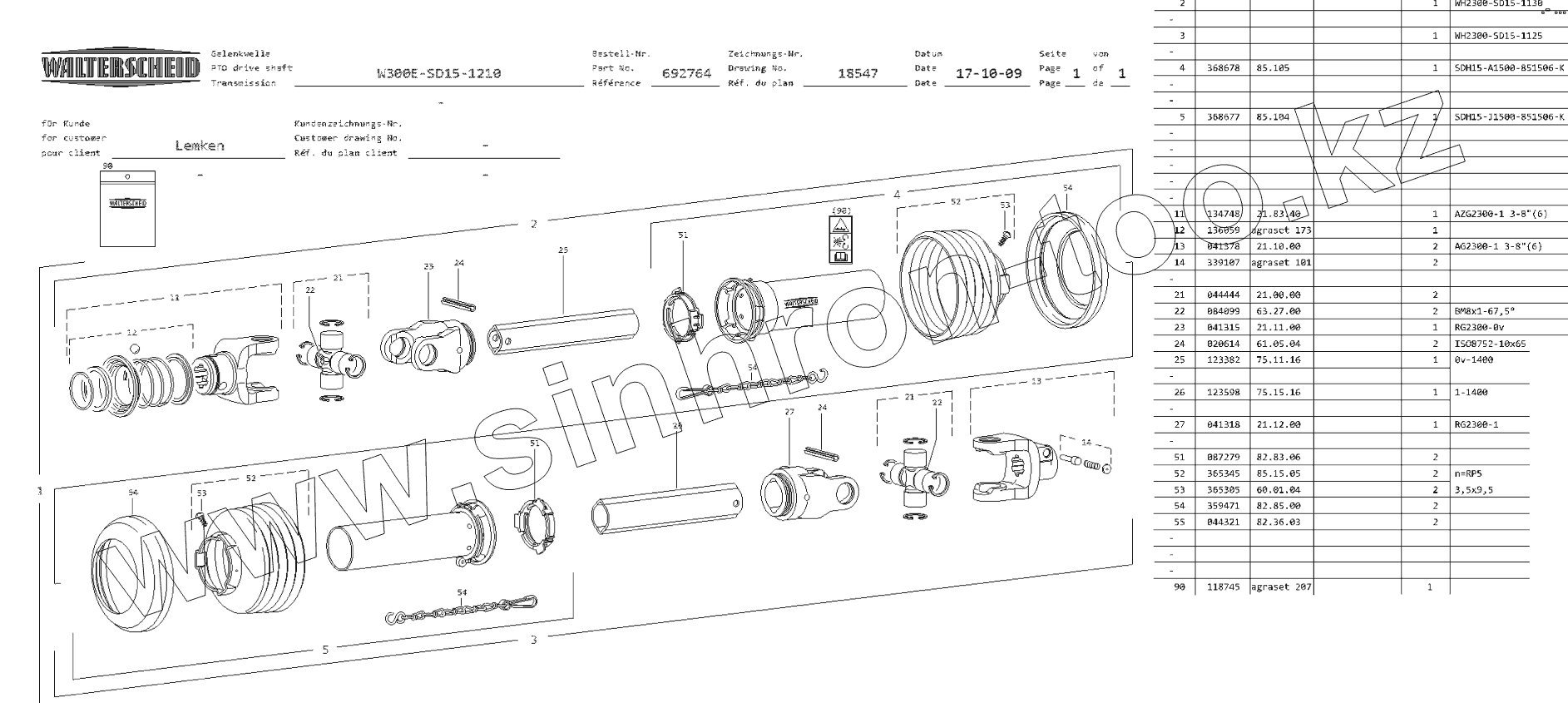 Каталог запасных частей к технике: Lemken Primus 10 (Часть 1). R001129 Cardan shaft