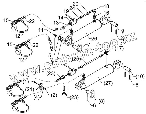 Каталог запасных частей к технике: Lemken Quarz 7/400K. Hydraulic assembly DA 80x320-AHG-ST