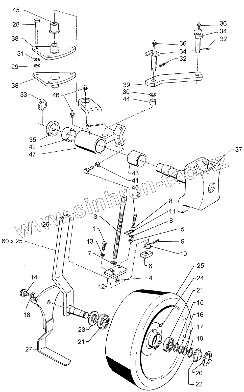 Каталог запасных частей к технике: Lemken Vari-Opal 100HX. 648 7697 Depth wheel, lateral