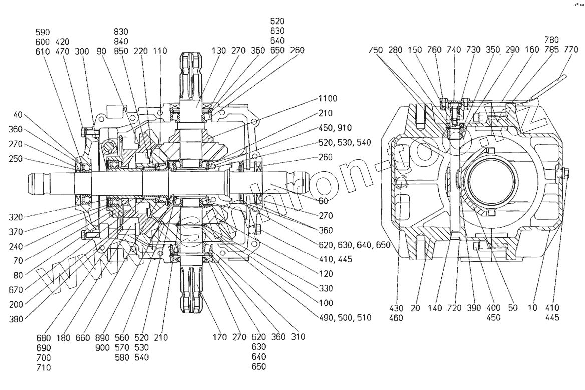 Каталог запасных частей к технике: Lemken Zirkon 10/400K. Gear box Zirkon 10/400-600 K