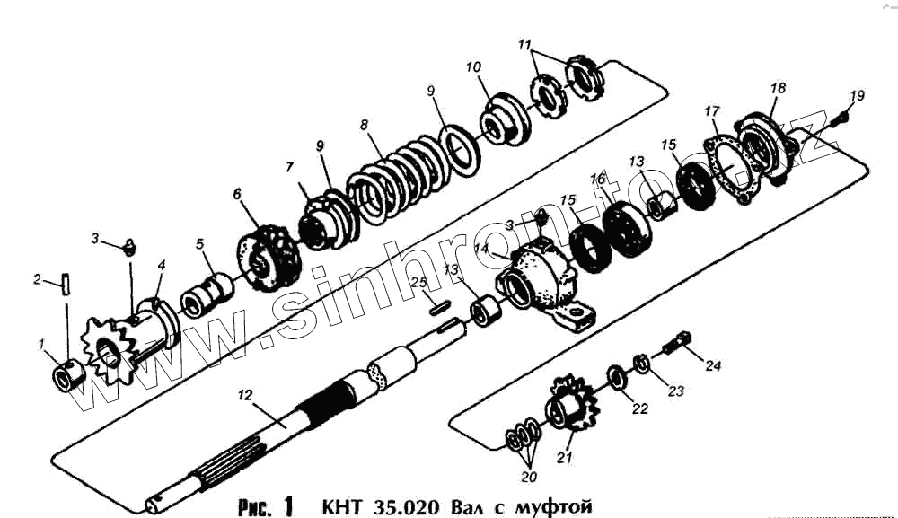 Каталог запасных частей к технике: Лидсельмаш КТН-2В. КНТ 35.020 Вал с муфтой