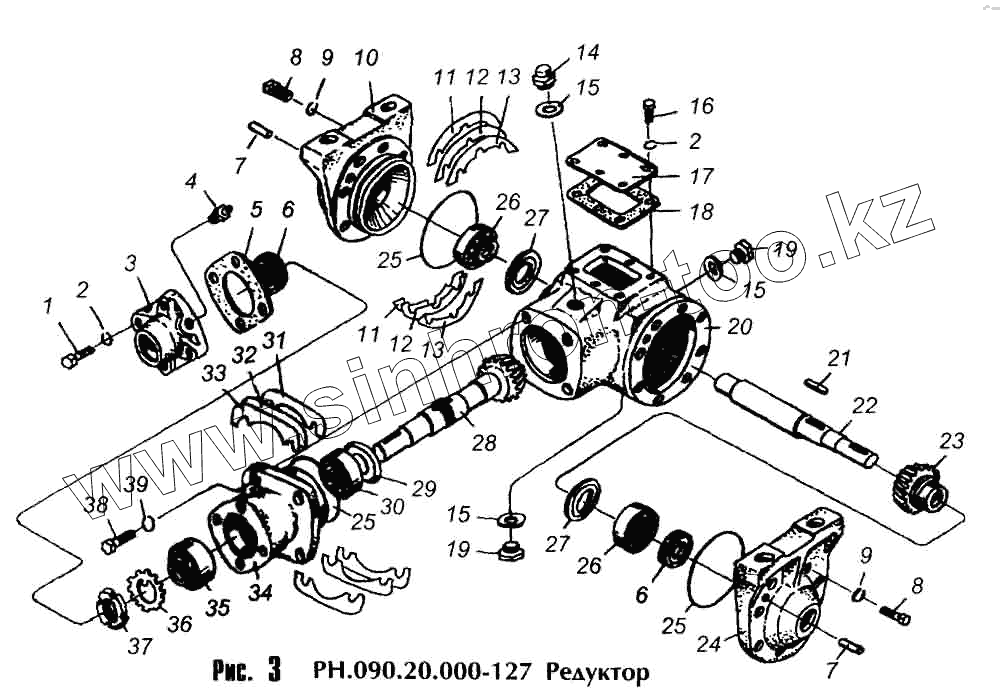 Каталог запасных частей к технике: Лидсельмаш КТН-2В. РН.090.20.000-127 Редуктор