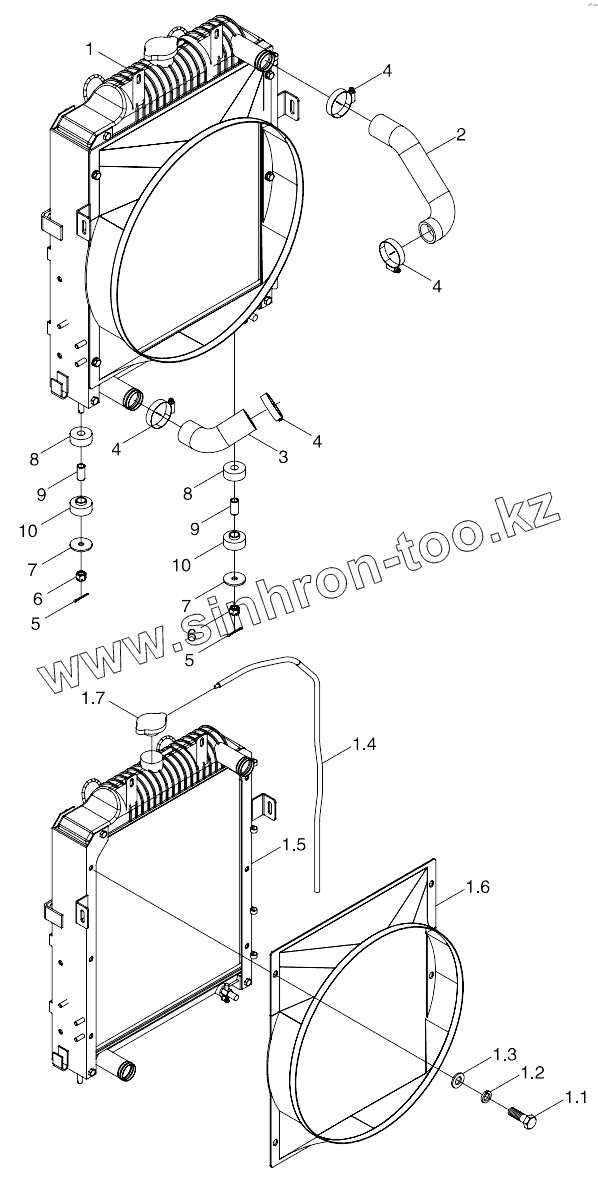 Каталог запасных частей к технике: Lovol TB-604. TS04131090000K Cooling System Assembly