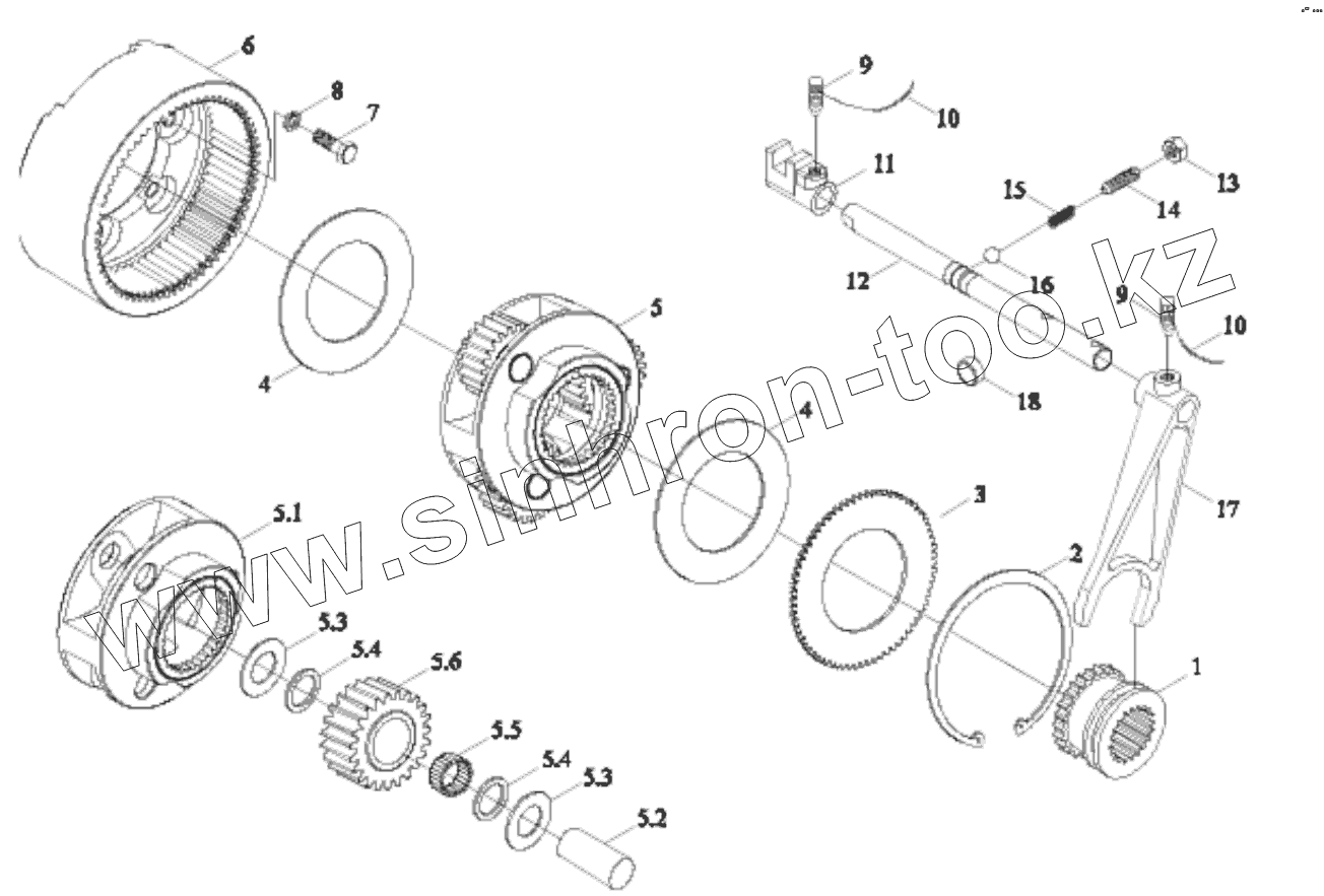 Каталог запасных частей к технике: Lovol TD-1304. TC05374030000 CREEPER GEAR MECHANISM ASSEMBLY