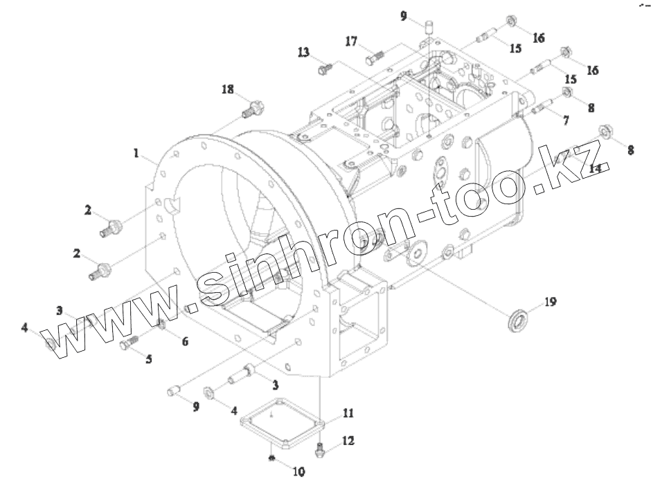 Каталог запасных частей к технике: Lovol TD-1304. TD2S371150000 GEARBOX HOUSING ASSEMBLY