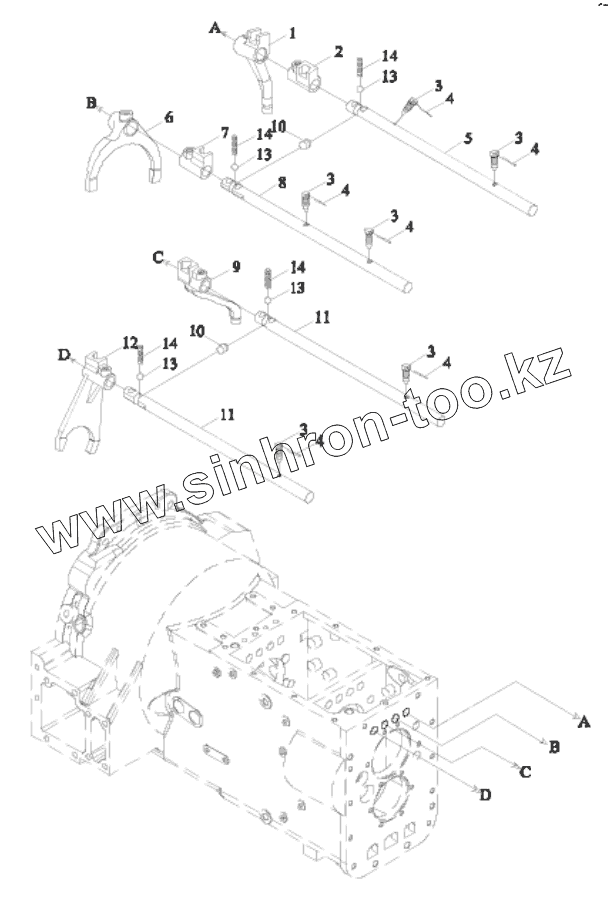 Каталог запасных частей к технике: Lovol TD-1304. TD2S373020000 GEARSHIFT CONTROLLING MECHANISM ASSEMBLY-1
