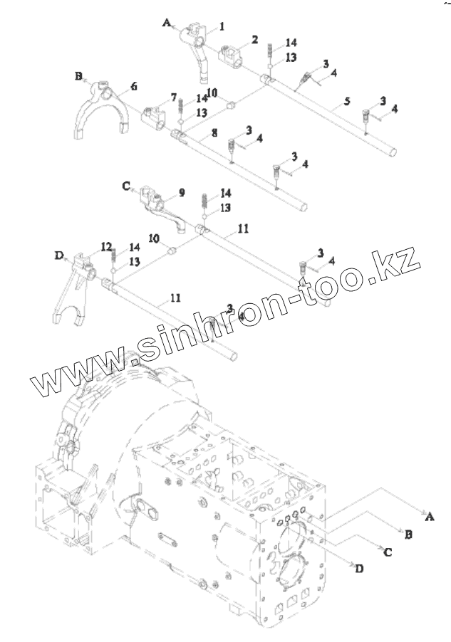 Каталог запасных частей к технике: Lovol TD-1304. TD2S373020000 GEARSHIFT CONTROLLING MECHANISM ASSEMBLY-1