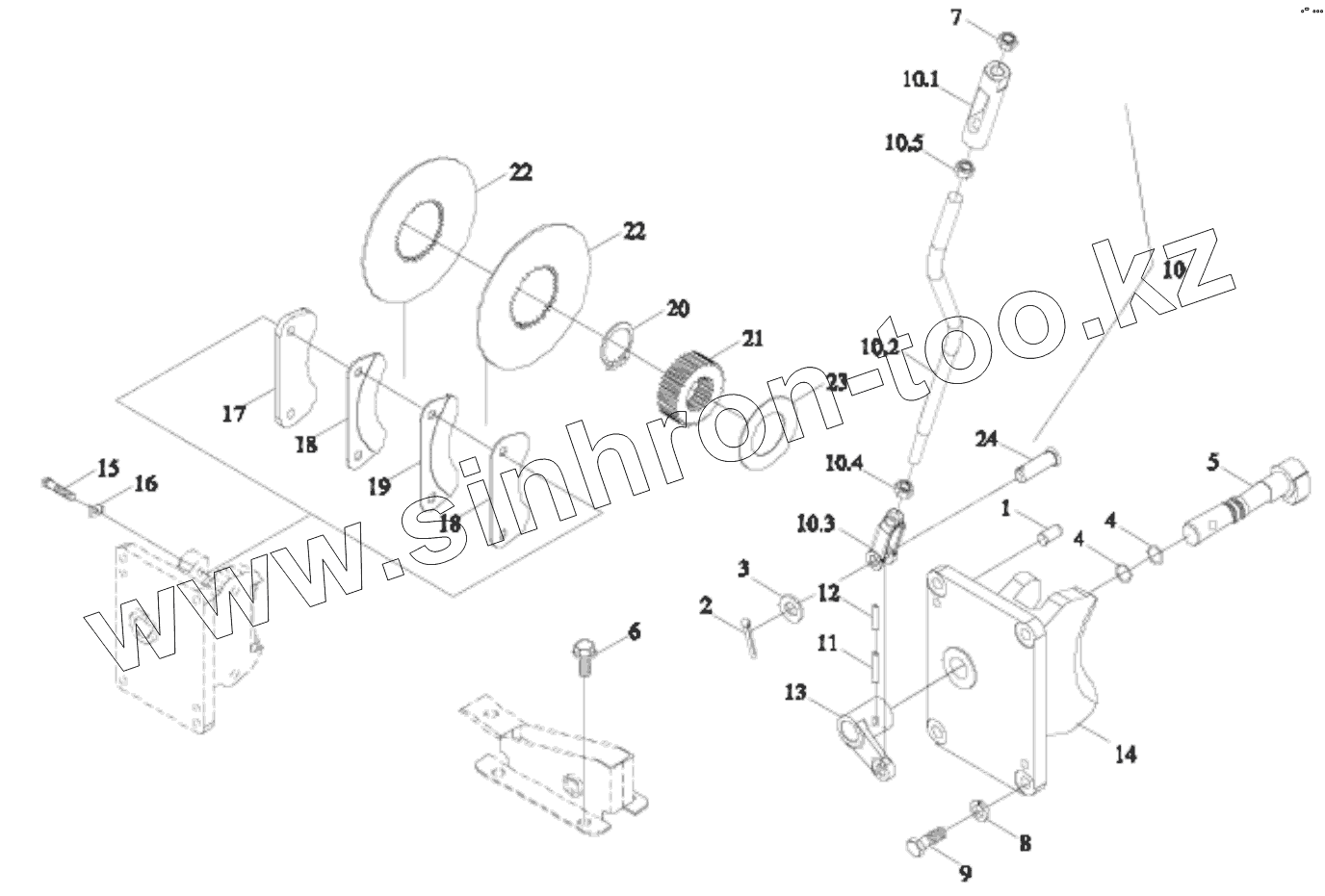 Каталог запасных частей к технике: Lovol TD-1304. TD3P435010000 PARKING BRAKE CONTROL MECHANISM ASSEMBLY-1