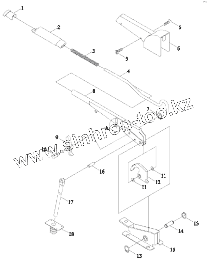 Каталог запасных частей к технике: Lovol TD-1304. TD3P435010000 PARKING BRAKE CONTROL MECHANISM ASSEMBLY-2