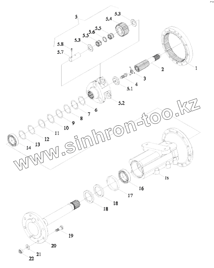 Каталог запасных частей к технике: Lovol TD-904. FT800.39.001 LEFT FINAL TRANSMISSION ASSEMBLY