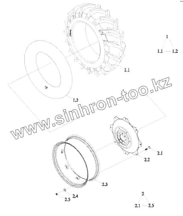Каталог запасных частей к технике: Lovol TD-904. FT804.34F.001 REAR DRIVING WHEEL ASSEMBLY