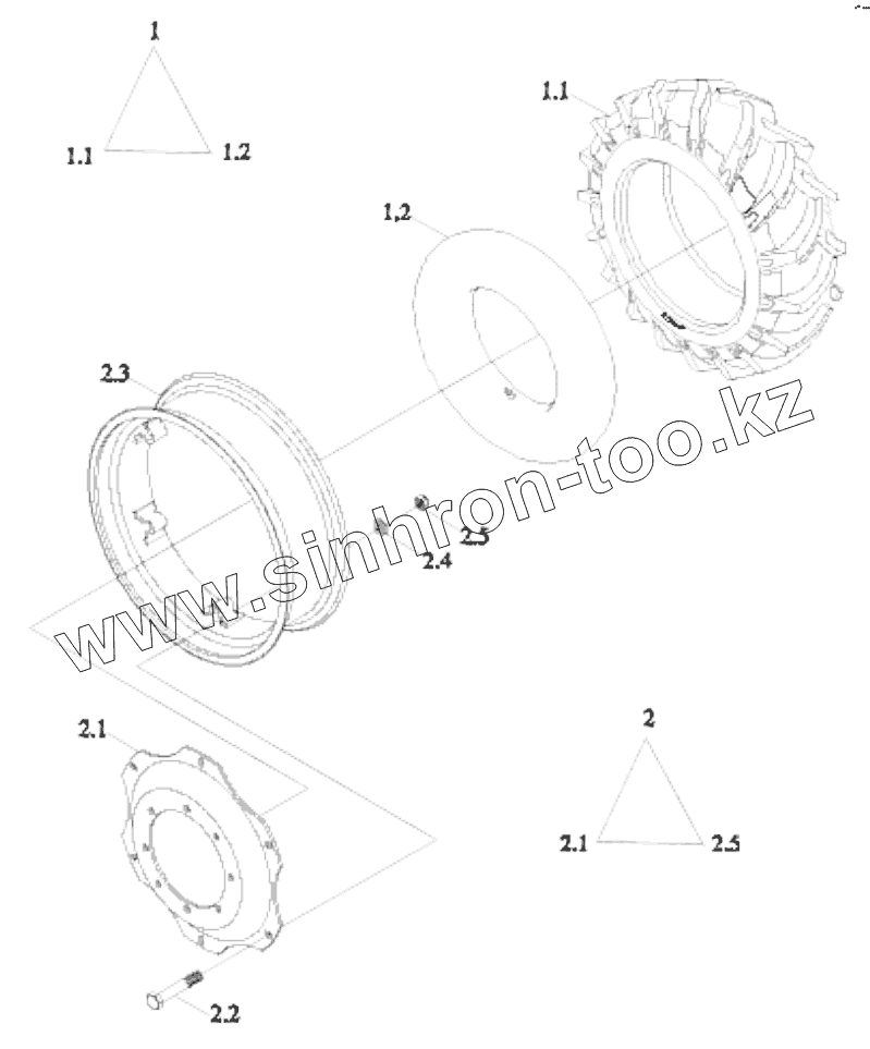 Каталог запасных частей к технике: Lovol TD-904. FT904.32F.001 FRONT DRIVING WHEEL ASSEMBLY