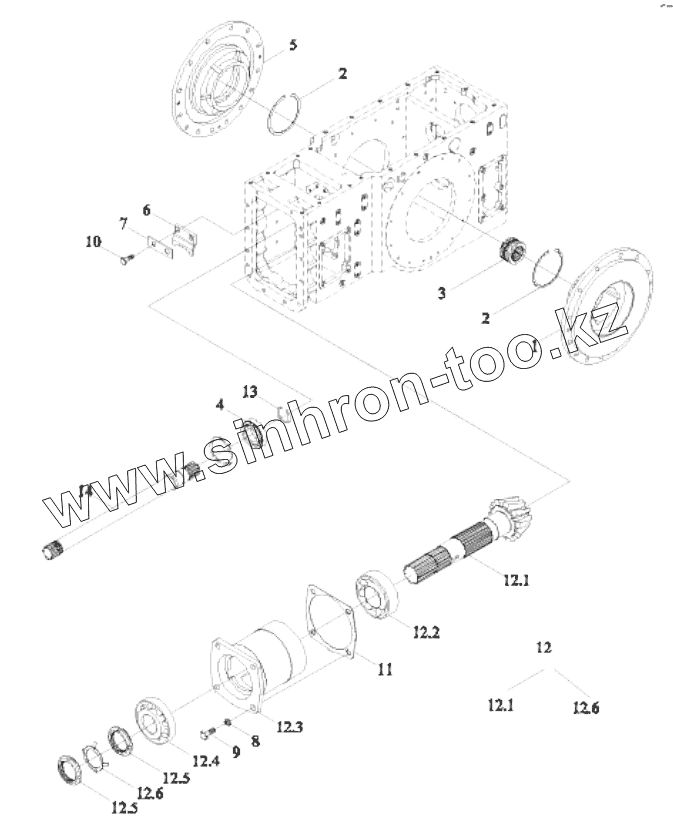 Каталог запасных частей к технике: Lovol TD-904. TC05382010000 REAR AXLE CENTRAL TRANSMISSION ASSEMBLY-1