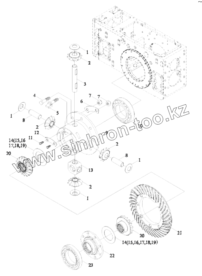 Каталог запасных частей к технике: Lovol TD-904. TC05382010000 REAR AXLE CENTRAL TRANSMISSION ASSEMBLY-2