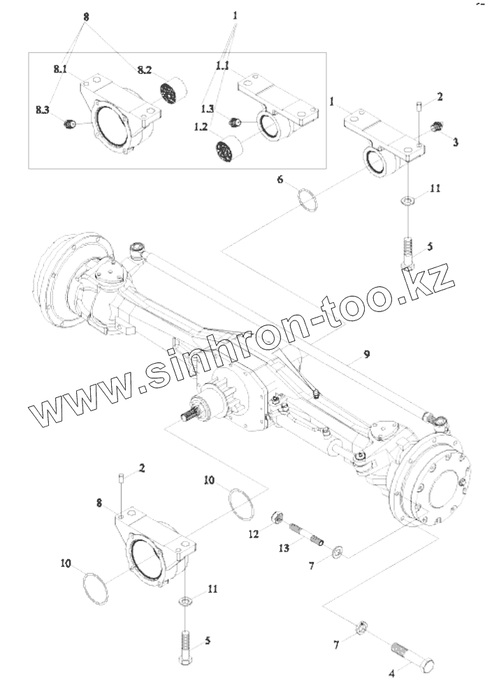 Каталог запасных частей к технике: Lovol TD-904. TD1C311010000K FRONT DRIVING AXLE ASSEMBLY-1