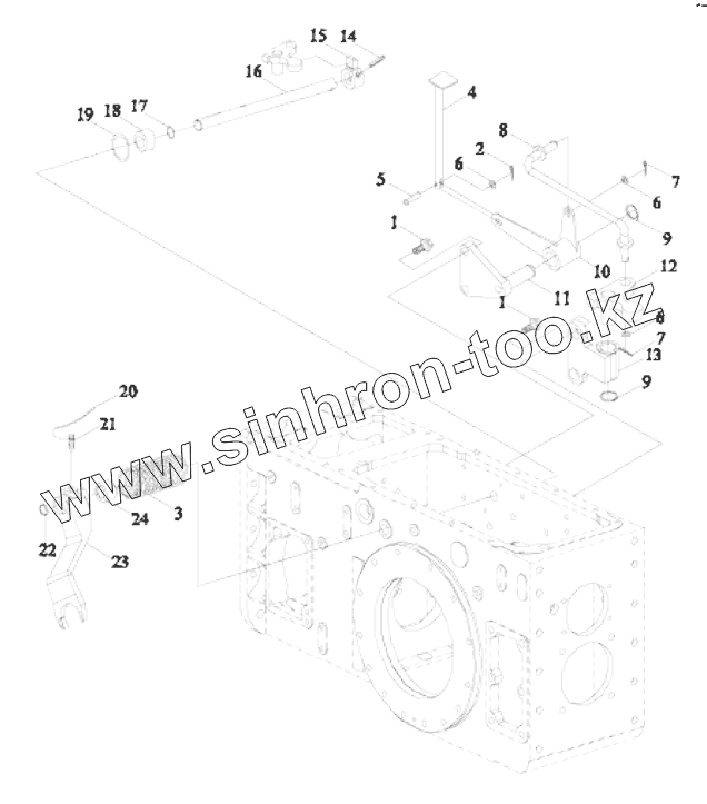 Каталог запасных частей к технике: Lovol TD-904. TS06383010000 DIFFERENTIAL LOCK CONTROL MECHANISM ASSEMBLY