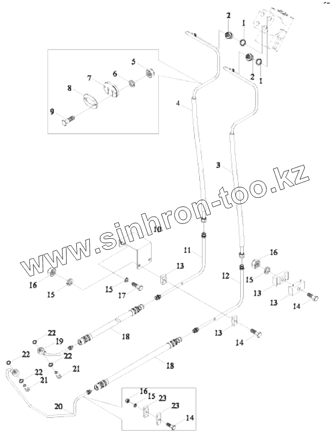 Каталог запасных частей к технике: Lovol TD-904. TS06402030000 FULL HYDRAULIC STEERING PIPE ASSEMBLY-1