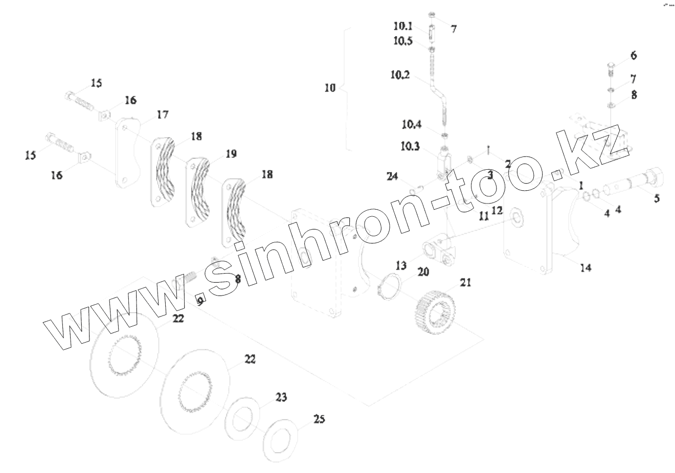Каталог запасных частей к технике: Lovol TD-904. TS06435010000 PARKING BRAKE CONTROL MECHANISM ASSEMBLY-1