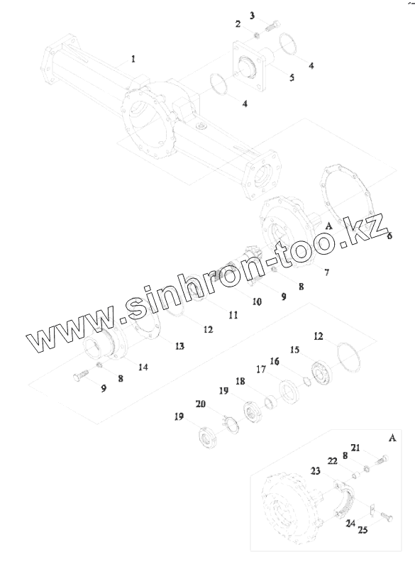 Каталог запасных частей к технике: Lovol TE-354. FRONT DRIVING AXLE ASSEMBLY-3.1