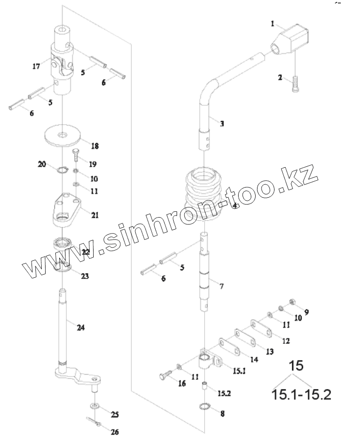 Каталог запасных частей к технике: Lovol TE-354. SHUTTLE SHIFT CONTROL MECHANISM ASSEMBLY