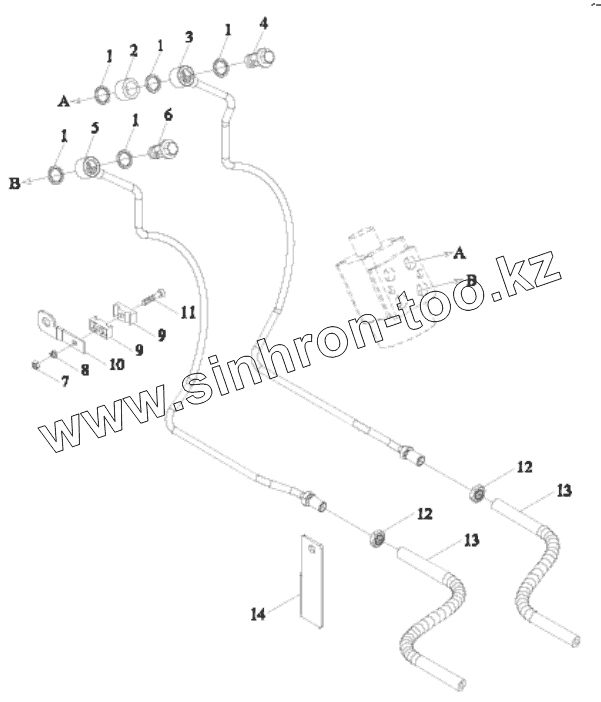 Каталог запасных частей к технике: Lovol TE-354. STEERING PIPE ASSEMBLY-2