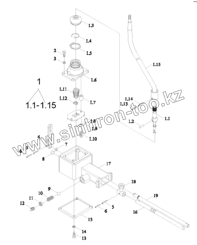 Каталог запасных частей к технике: Lovol TE-354. TRANSMISSION CASE CONTROL MECHANISM ASSEMBLY-1