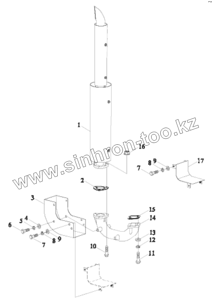 Каталог запасных частей к технике: Lovol TE-404. TE250.22 EXHAUST SYSTEM ASSEMBLY