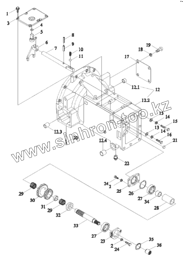 Каталог запасных частей к технике: Lovol TE-404. TE300.361 SHUTTLE SHIFT ASSEMBLY-1