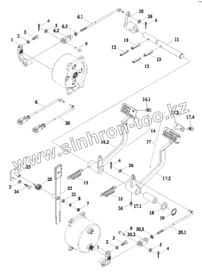 Каталог запасных частей к технике: Lovol TE-404. TE320.433 BRAKE CONTROL MECHANISM ASSEMBLY