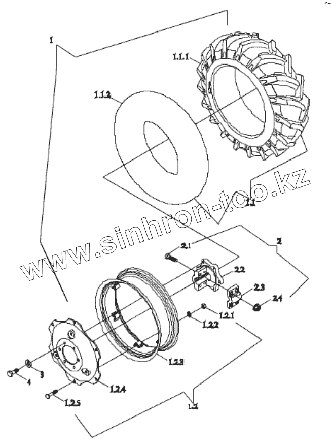 Каталог запасных частей к технике: Lovol TE-404. TE354.34F REAR DRIVING WHEEL ASSEMBLY