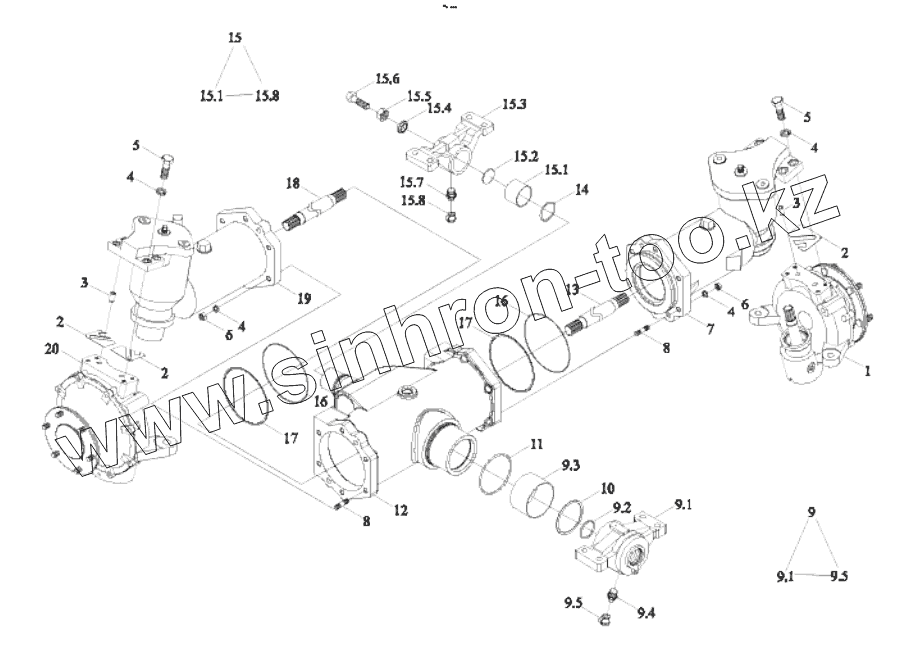 Каталог запасных частей к технике: Lovol TS-4A504-038K. TC02311220000 FRONT DRIVING AXLE ASSEMBLY-2