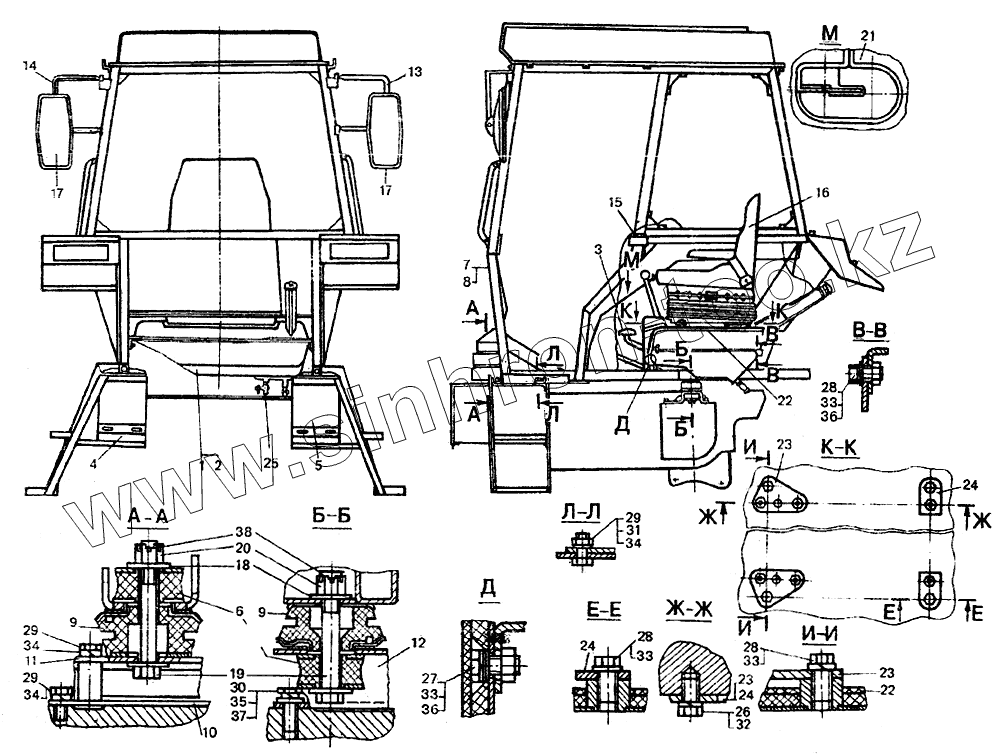 Каталог запасных частей к технике: ЛТЗ-55. Кабина с сиденьем (каркас безопасности)