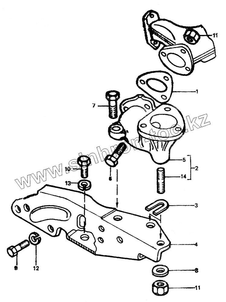 Каталог запасных частей к технике: ЛТЗ-55. Кронштейн с патрубком