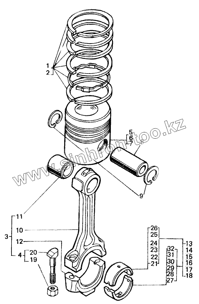 Каталог запасных частей к технике: ЛТЗ-55. Поршень и шатун