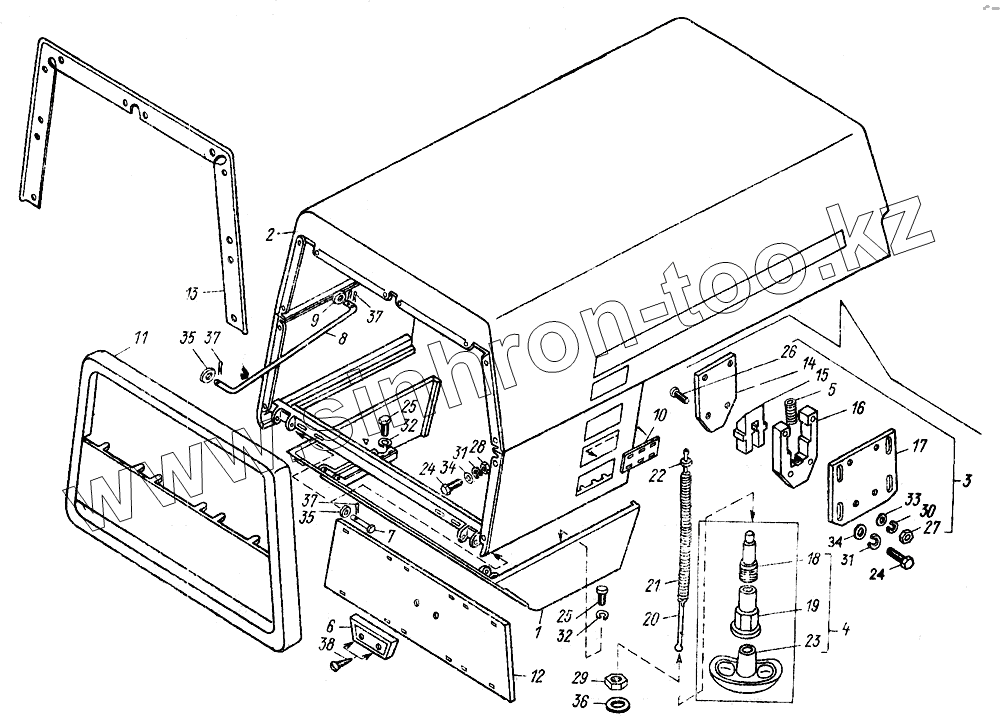 Каталог запасных частей к технике: ЛТЗ-55. Установка капота